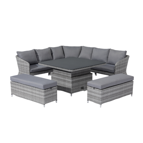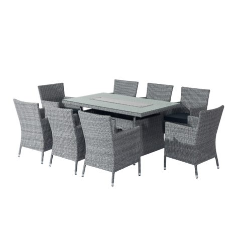 Fabrika toptan dış mekan mobilyası bahçe veranda ateş masa yemek seti ateş çukuru rattan hasır yemek seti